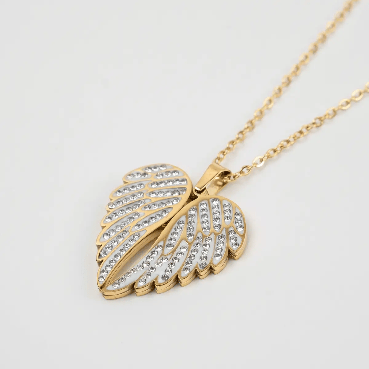 Ten naszyjnik odzwierciedla anielską esencję dzięki dwóm delikatnie wykonanym skrzydłom, które otwierają się, odsłaniając cenne serce.